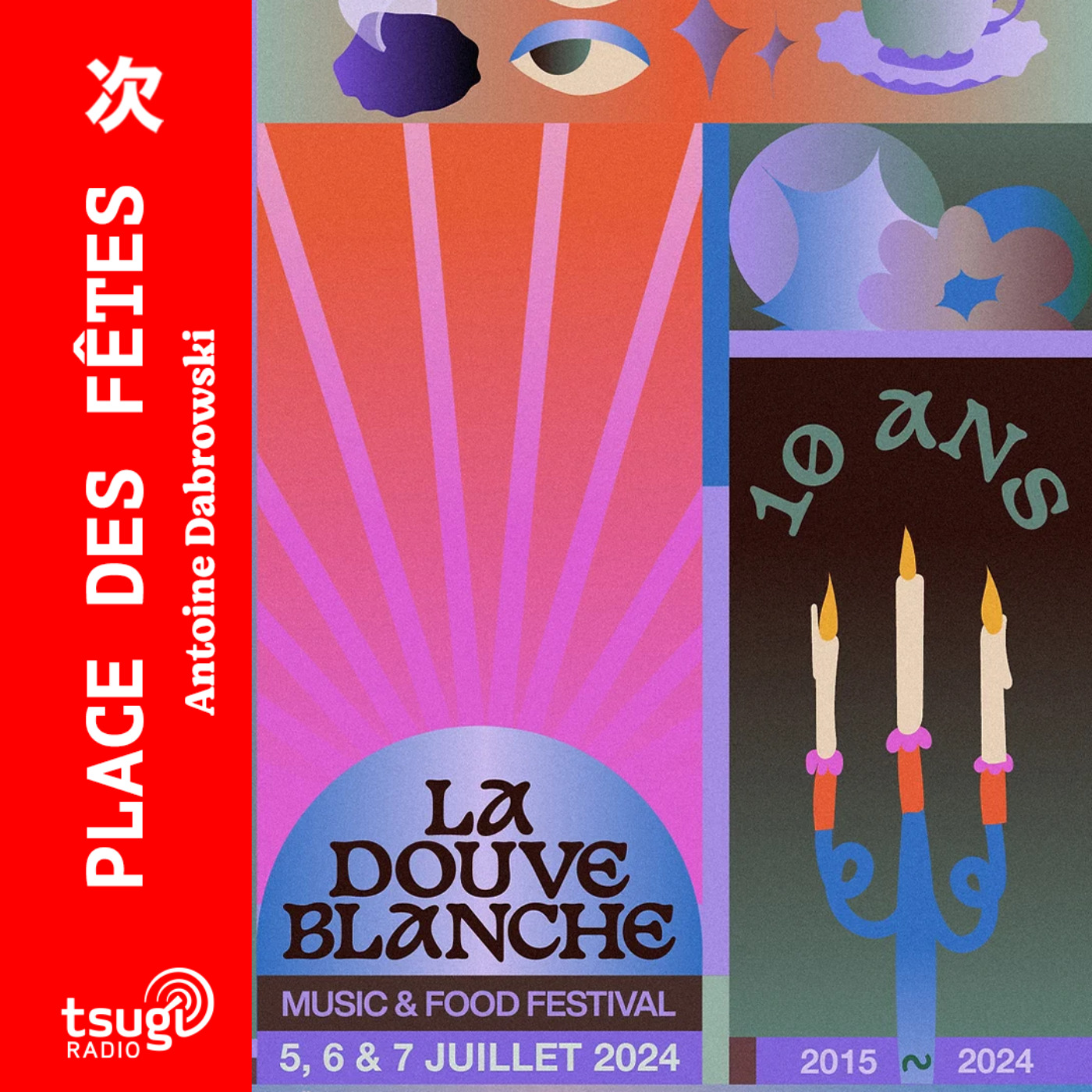 Aujourd’hui dans Place des Fêtes, c’est l’histoire d’un château millénaire, celui d’Égreville quelque part au Sud de Fontainebleau. Un petit château un peu biscornu acquis dans les années 2000 par la famille Roy, ça ne s’invente pas. Ce château est entouré d’une douve – à sec faut-il préciser. Il y a 10 ans, de drôles d’animaux qui aiment autant la musique que la cuisine, se sont dit : tiens, si plutôt que de l’eau croupie et des carpes transgéniques, on organisait dans cette douve, un festival ? Léopold Roy, fils du châtelain demande la permission à son père, Rémy, qui n’en est pas à sa première excentricité, qui lui dit banco. Bon, je vais arrêter de faire semblant de me prendre pour Jean de la Fontaine, mais aujourd’hui dans Place des Fêtes, on célèbre les 10 ans de la Douve Blanche, un festival unique en son genre. Alors oui, je sais, on vous l’a déjà fait le coup du festival unique en son genre. Mais croyez-moi, le docteur ès-festival que je suis n’en a pas vu beaucoup des comme ça. À la Douve Blanche, on programme des chef·fes et de la nourriture comme on programme des artistes et de la musique. À la Douve Blanche, on programme des DJs comme des chanteuses, à la Douve Blanche, le line-up n’est pas construit sur la notoriété mais sur la cohérence artistique. À la Douve Blanche, on peut s’envoyer un festin des chef·fes, à savoir un repas gastronomique, en s’étant endormi à 8h du matin sur une palette. À la Douve Blanche, il se passe beaucoup de choses dont il est préférable que certaines restent à la Douve Blanche. Aujourd’hui sur Tsugi Radio, vous allez entendre des voix que vous connaissez, pour la plupart, qui vont toutes déclarer leur flamme à ce festival pas comme les autres. Alors en attendant de remplir la douve du château d’Égreville de tout notre amour, les 5, 6 et 7 juillet prochains, aujourd’hui Place des Fêtes fête les 10 ans de la Douve Blanche.