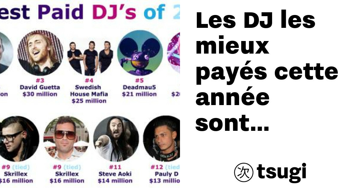Le site Forbes a publié cet été la liste des 15 DJ les mieux payés de l’année et l’on y retrouve bien sûr les deux DJ sus-cité. Avec ses 46 millions, Calvin Harris détient la première position. Le DJ aura été mieux payé que Katy Perry ou Jay-Z cette année. Certes on n’atteint pas (encore) les sommes du rock, comme celles touchées par U2 (195 millions de dollars) ou Bon jovi (125 millions).